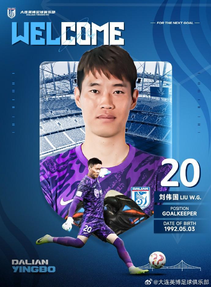 北京时间1月24日,大连英博官方宣布,原辽宁铁人门将刘伟国加盟俱乐部。