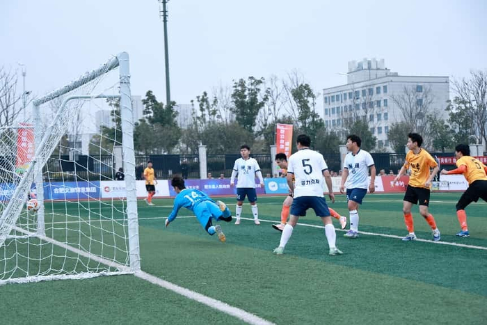 金龙翻腾,瑞狮欢跃,赛前一场精彩的舞龙舞狮表演率先点燃全场气氛。随着主裁判一声哨响,比赛正式打响。双方球员迅速进入状态,传球配合行云流水,过人突破犀利果断,抢断凶狠精准。肥东队凭借主场之利,攻势如潮,频频威胁对方球门;巢湖队则防守严密,反击锐利。射门与扑救的精彩镜头轮番上演,双方你来我往、寸土必争,将现场气氛一次次推向沸点。
